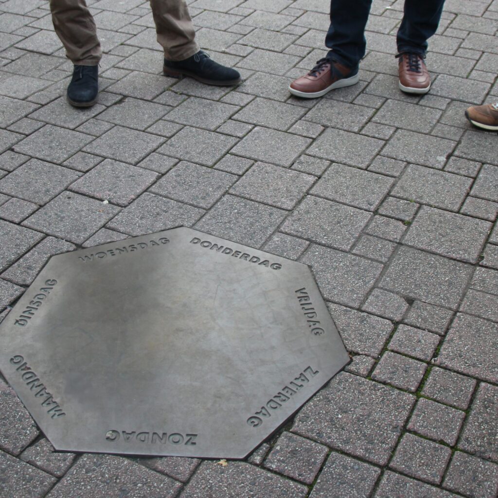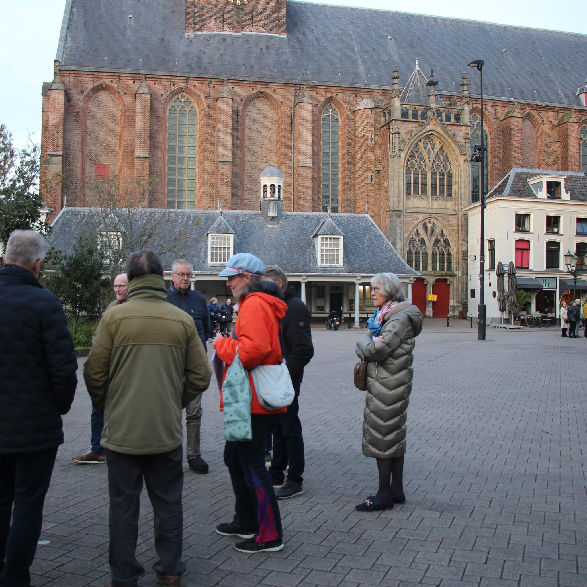 Waar we normaal gesproken met de bus naar een andere stad trokken om een kerk te bezoeken en wat vrije tijd te hebben, bleven we dit jaar in onze eigen stad. De Amersfoortse Gidsen namen ons in vier groepjes mee op een rondje rond de kerk. Ze vertelden over de rijke geschiedenis en bijzondere gebeurtenissen die zich juist rondom onze eigen Joriskerk hebben afgespeeld. Een uur lang keken we met nieuwe ogen naar onze vertrouwde omgeving.