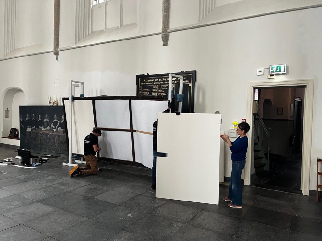 Voor het transport naar Maastricht is het schilderij zorgvuldig voorbereid: de achterkant werd gestabiliseerd, het doek verpakt in vetvrij papier en bubbelfolie, en ook de lijst kreeg een beschermende verpakking. Via Geleen zal het kunstwerk aankomen in het Bonnefantenmuseum, waar het op zaal wordt gerestaureerd. Bezoekers kunnen daar het restauratieproces live volgen. De restauratie start in het nieuwe jaar, rond februari 2026. Hierover later meer.
